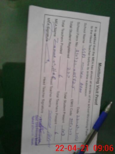 | Attendance Register | Head Teacher | MEA with School | Visit Proof |