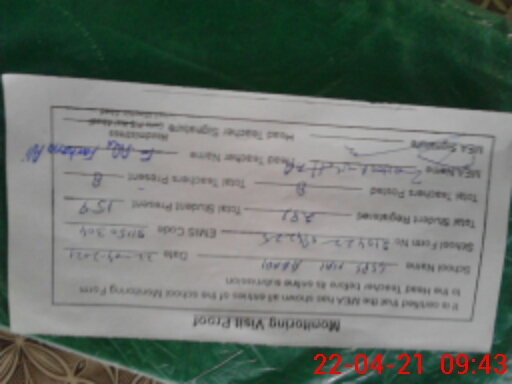 | Attendance Register | Head Teacher | MEA with School | Visit Proof |