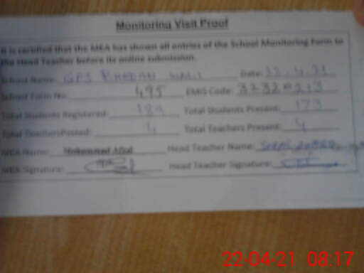 | EMIS Code: 32320213 | Name of School: GPS BHEDAN WALI | |||