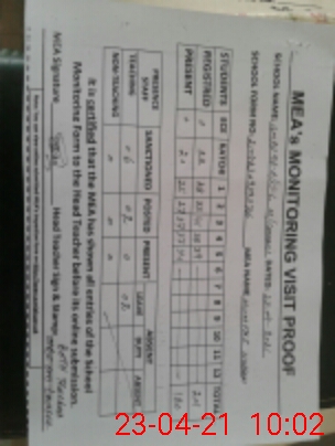 | Certified that this School was Inspected by the Undersigned MEA/DMO Today and the Information Stated Above is as Per Record. | |||||