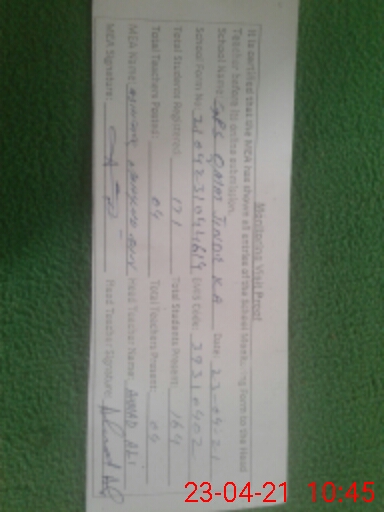 | Certified that this School was Inspected by the Undersigned MEA/DMO Today and the Information Stated Above is as Per Record. | |||||