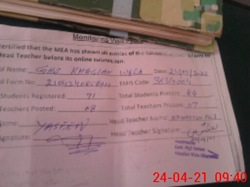 | EMIS Code: 38310004 | Name of School: GHS KHAGLAN WALA | |||