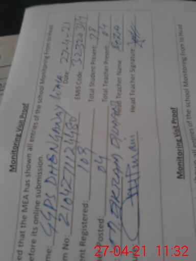 | Monitoring Date: 27-04-2021 | Start Time: 27-04-2021 11:00 AM | End Time: 27-04-2021 11:36 AM | Name of MEA: M.Ak**** Al**** | |