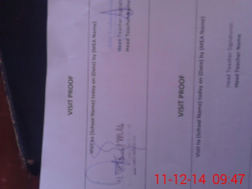 | Attendance Register | Head Teacher | MEA with School | Visit Proof |