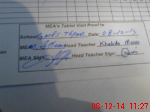 | Attendance Register | Head Teacher | MEA with School | Visit Proof |