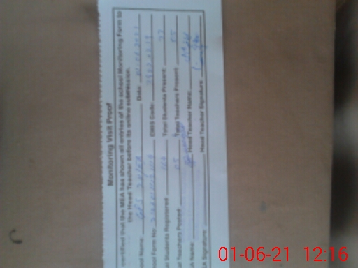 | Attendance Register | Head Teacher | MEA with School | Visit Proof |