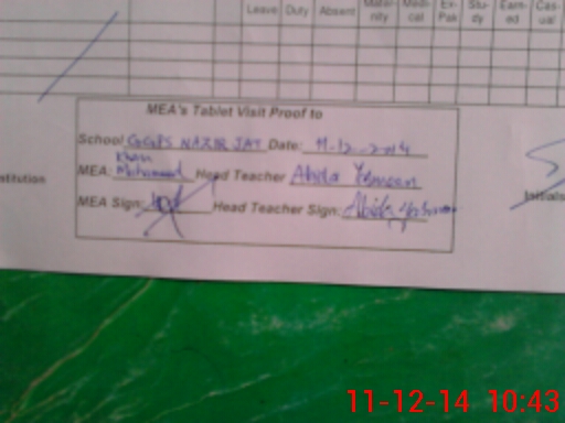 | Attendance Register | Head Teacher | MEA with School | Visit Proof |