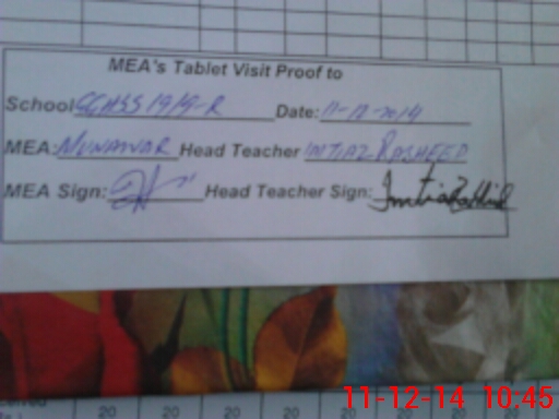 | Attendance Register | Head Teacher | MEA with School | Visit Proof |