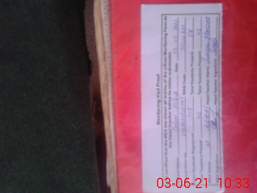 | Monitoring Date: 03-06-2021 | Start Time: 03-06-2021 09:27 AM | End Time: 03-06-2021 10:33 AM | Name of MEA: Mu**** Ab**** | |