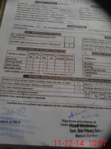 | Certified that this School was Inspected by the Undersigned MEA/DMO Today and the Information Stated Above is as Per Record. | |||||