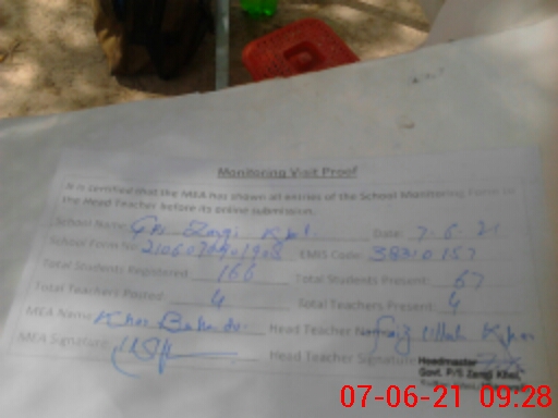 | EMIS Code: 38310157 | Name of School: GPS ZANGHI KHEL | |||