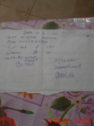 | Name: Mu**** Za**** Designation: (School Headmaster's/Headmistress's) SST Phone/Cell Number: 03**** |