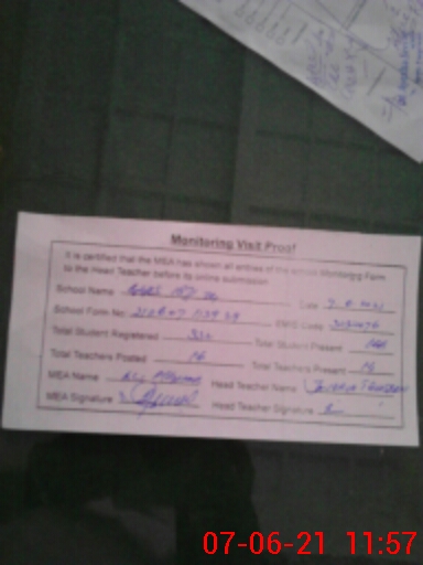 | Certified that this School was Inspected by the Undersigned MEA/DMO Today and the Information Stated Above is as Per Record. | |||||