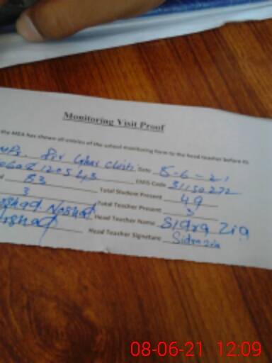 | EMIS Code: 31150272 | Name of School: GMPS PIR GHAR CHISHTI | |||