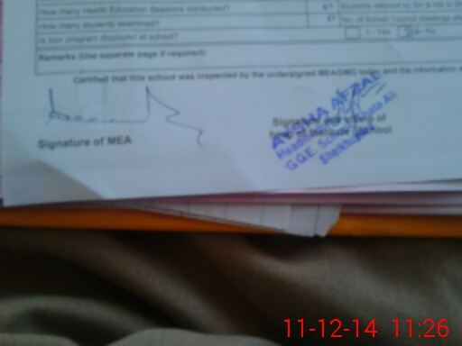| Certified that this School was Inspected by the Undersigned MEA/DMO Today and the Information Stated Above is as Per Record. | |||||