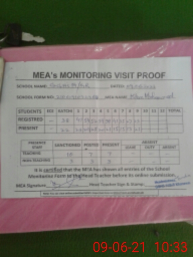 | Certified that this School was Inspected by the Undersigned MEA/DMO Today and the Information Stated Above is as Per Record. | |||||