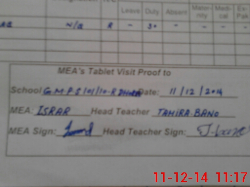 | Attendance Register | Head Teacher | MEA with School | Visit Proof |