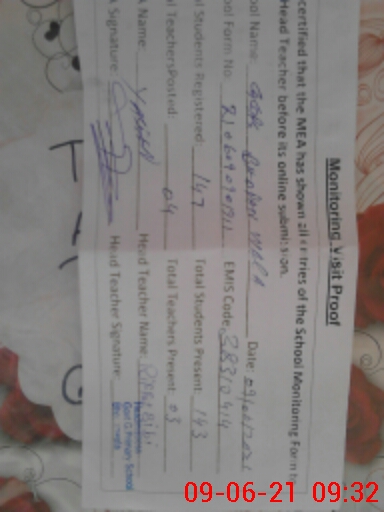 | Certified that this School was Inspected by the Undersigned MEA/DMO Today and the Information Stated Above is as Per Record. | |||||