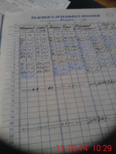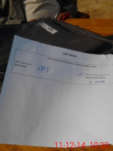 | Attendance Register | Head Teacher | MEA with School | Visit Proof |