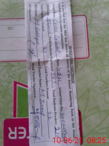 | Certified that this School was Inspected by the Undersigned MEA/DMO Today and the Information Stated Above is as Per Record. | |||||
