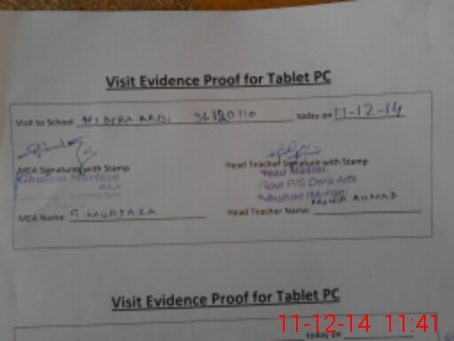 | Attendance Register | Head Teacher | MEA with School | Visit Proof |