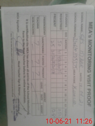 | Monitoring Date: 10-06-2021 | Start Time: 10-06-2021 09:41 AM | End Time: 10-06-2021 11:28 AM | Name of MEA: Kh**** Me**** | |