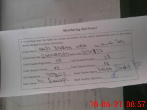 | Certified that this School was Inspected by the Undersigned MEA/DMO Today and the Information Stated Above is as Per Record. | |||||