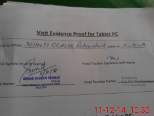 | EMIS Code: 36110093 | Name of School: GGHS MC RAHIM ABAD MULTAN | |||