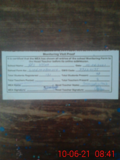 | Certified that this School was Inspected by the Undersigned MEA/DMO Today and the Information Stated Above is as Per Record. | |||||