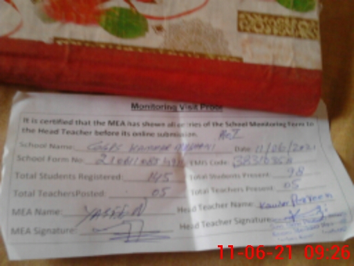 | EMIS Code: 38310358 | Name of School: GGPS KAMMAR MUSHANI NO.1 | |||