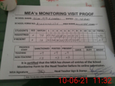 | Attendance Register | Head Teacher | MEA with School | Visit Proof |