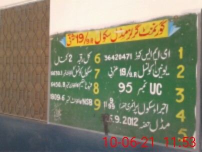 | EMIS Code: 36420471 | Name of School: GGES 19/9-R SHARQI, KACHA KHUH | |||