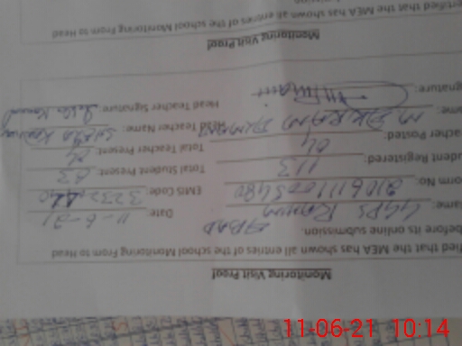 | Monitoring Date: 11-06-2021 | Start Time: 11-06-2021 09:40 AM | End Time: 11-06-2021 10:17 AM | Name of MEA: M.Ak**** Al**** | |