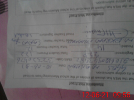 | Name: SA**** SH**** Designation: (School Headmaster's/Headmistress's) SSE(S) Phone/Cell Number: 03**** |