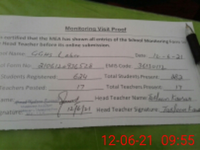 | EMIS Code: 36130112 | Name of School: GGHS LABER MORE MULTAN | |||