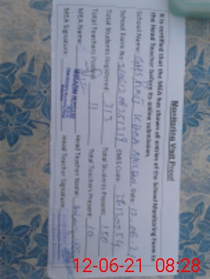 | Attendance Register | Head Teacher | MEA with School | Visit Proof |