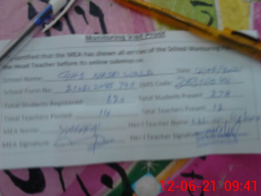 | EMIS Code: 38310044 | Name of School: GHS NASRI WALA | |||