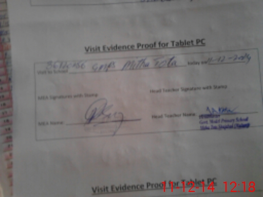 | Attendance Register | Head Teacher | MEA with School | Visit Proof |