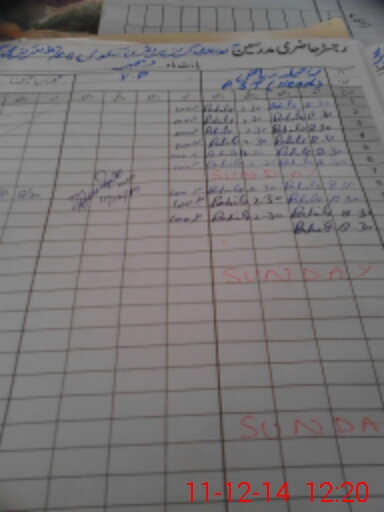 | CNIC | Full Name | Designation | R/C | Absence During Last Calender Month |