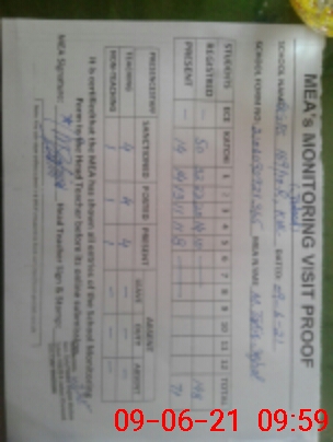 | Monitoring Date: 09-06-2021 | Start Time: 09-06-2021 09:21 AM | End Time: 09-06-2021 10:01 AM | Name of MEA: M.Ta**** Iq**** (S**** | |