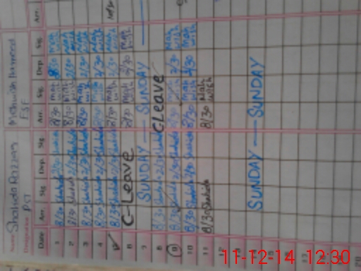 | CNIC | Full Name | Designation | R/C | Absence During Last Calender Month |
