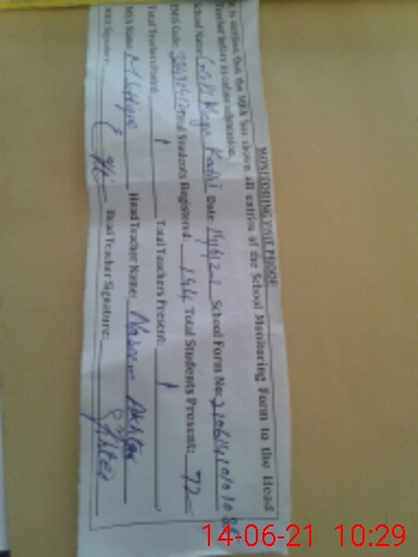 | Attendance Register | Head Teacher | MEA with School | Visit Proof |