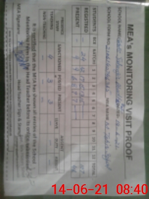 | Attendance Register | Head Teacher | MEA with School | Visit Proof |