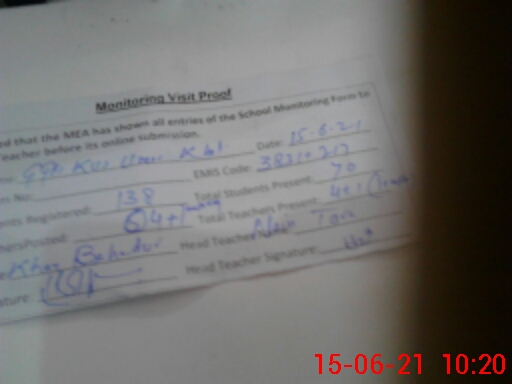 | Monitoring Date: 15-06-2021 | Start Time: 15-06-2021 09:46 AM | End Time: 15-06-2021 10:21 AM | Name of MEA: Kh**** Ba**** Kh**** | |