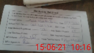 | Monitoring Date: 15-06-2021 | Start Time: 15-06-2021 09:48 AM | End Time: 15-06-2021 10:16 AM | Name of MEA: Za**** Iq**** BN**** | |