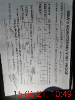 | Monitoring Date: 15-06-2021 | Start Time: 15-06-2021 10:07 AM | End Time: 15-06-2021 10:52 AM | Name of MEA: Sh**** Na**** | |