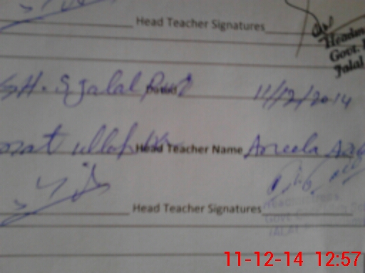 | Attendance Register | Head Teacher | MEA with School | Visit Proof |