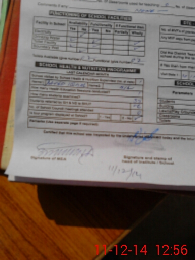 | Certified that this School was Inspected by the Undersigned MEA/DMO Today and the Information Stated Above is as Per Record. | |||||