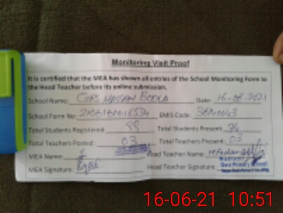 | Attendance Register | Head Teacher | MEA with School | Visit Proof |