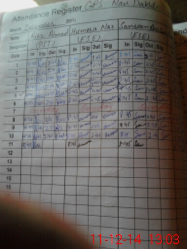 | CNIC | Full Name | Designation | R/C | Absence During Last Calender Month |